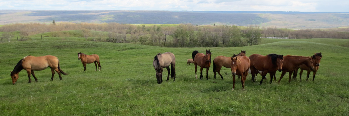 At Wineglass Ranch we combine renewable energy, holistic, organic and natural management practices. Our cattle, bison and horses are not confined in small pens, but rather, graze on open range natural grasses in the pristine hills above the Peace River. We take pride knowing how the animals we produce are raised. We are committed to low-stress handling practices. Three thousand acres of rolling hill pastureland, make a happy stress-reduced life for our livestock.