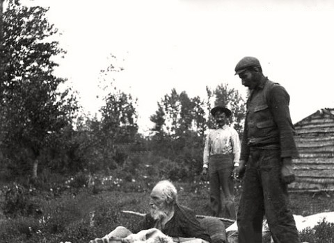 On June 12, 1900 O.C. Edwards wrote in his journal about meeting 'Twelve Foot Davis' at Peace River Crossing. In his journal Oliver tells how Henry Davis got his nickname. "His sobriquet '12 foot' was given him in old British Columbia mining days. A valuable claim had been over-measured in staking it off, the fortunate one had 12 feet too much. Davis found this out and took possession so he came by the name '12 Foot Davis' and the name will go with him to his grave." Grandfather Edwards took the only two pictures known to exist of Henry Davis. Three months later, September 13, 1900 Henry Fuller Davis died.